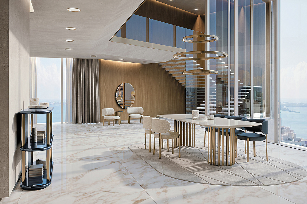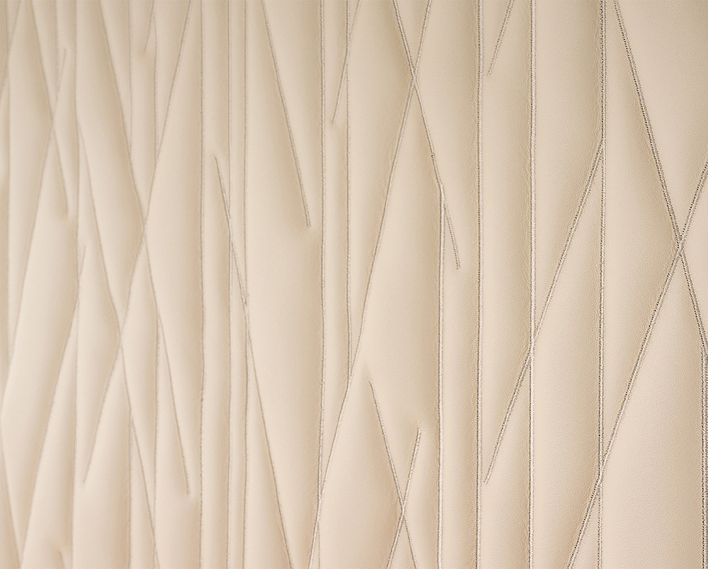 Каркас: МДФ, лакированный однотонный глянцевый полиэстер. Спинка украшена вышитыми кожаными аппликациями. / Детали: металлическая отделка цвета шампанского золота или графитового серого.