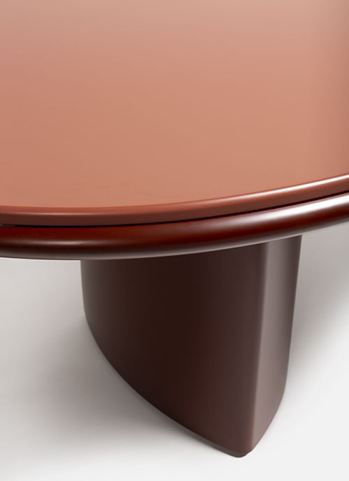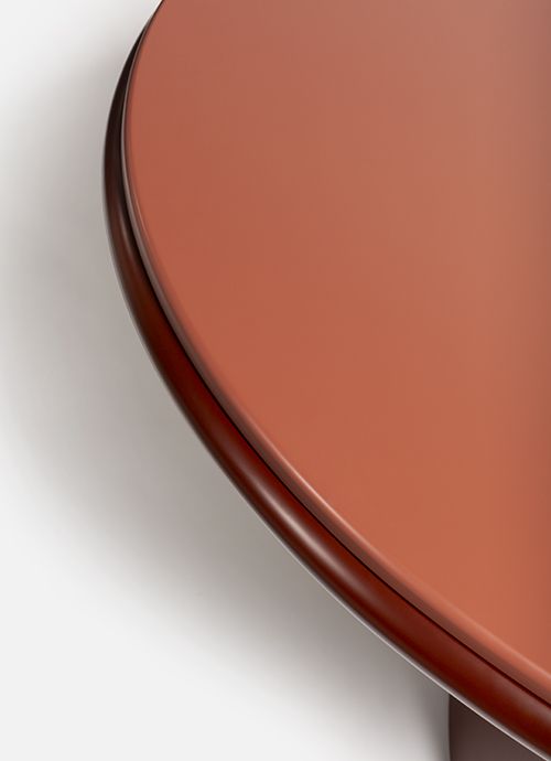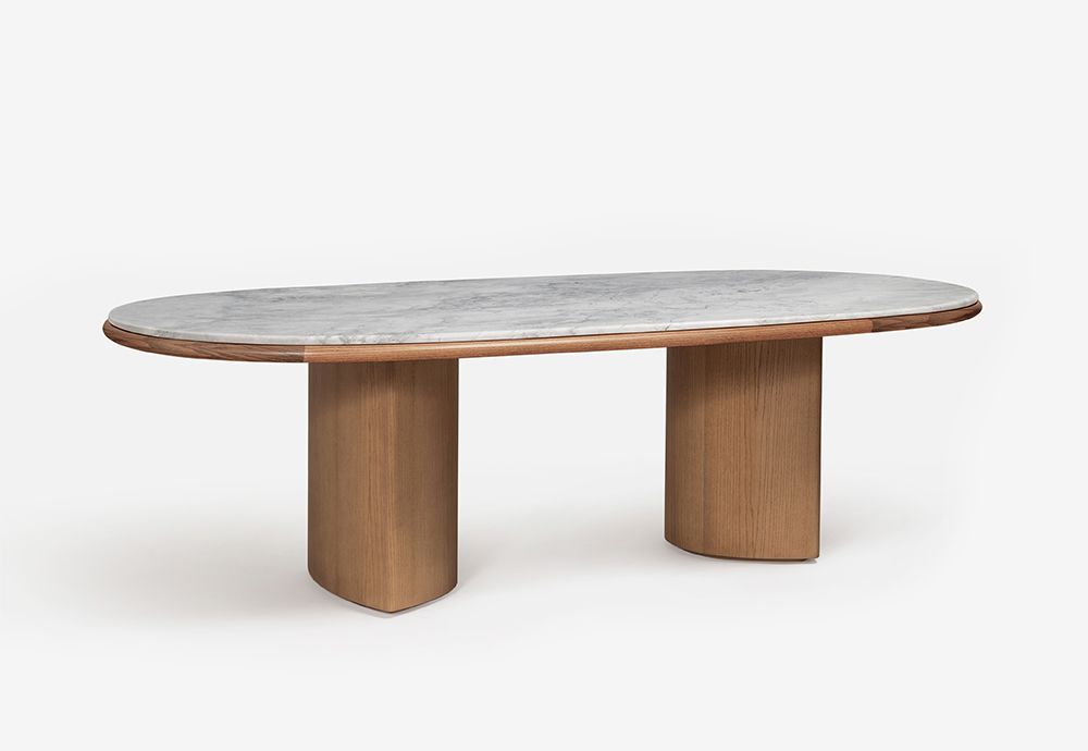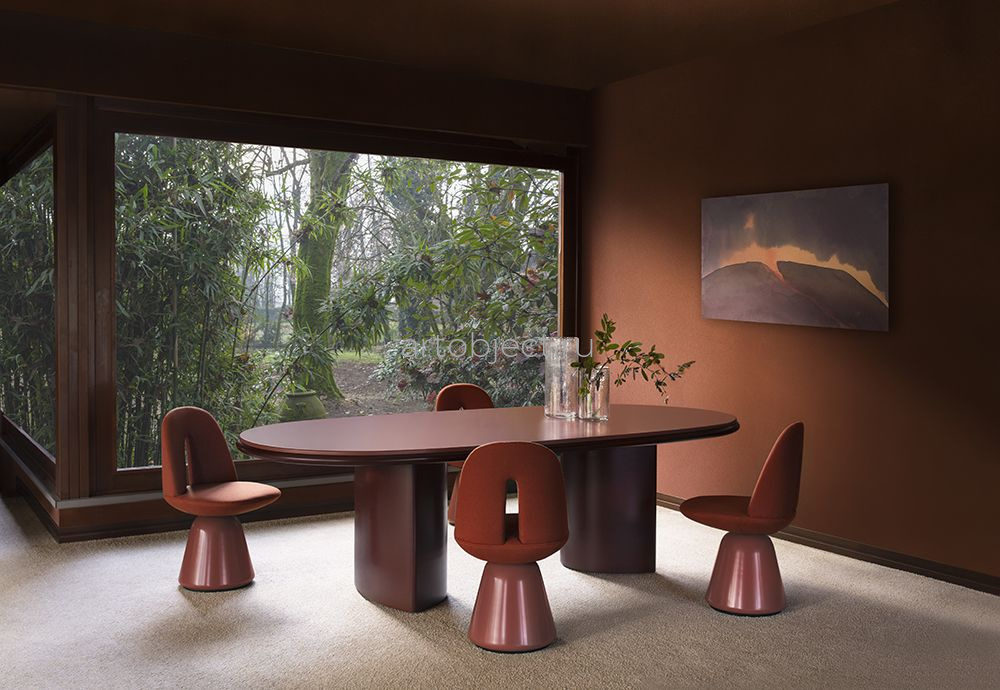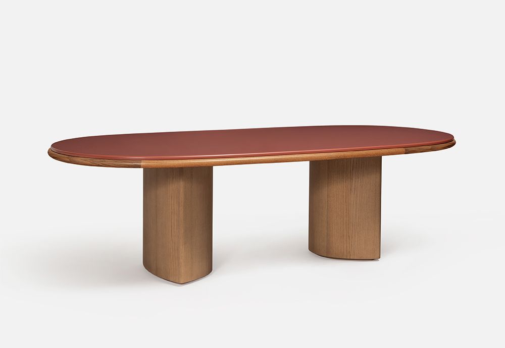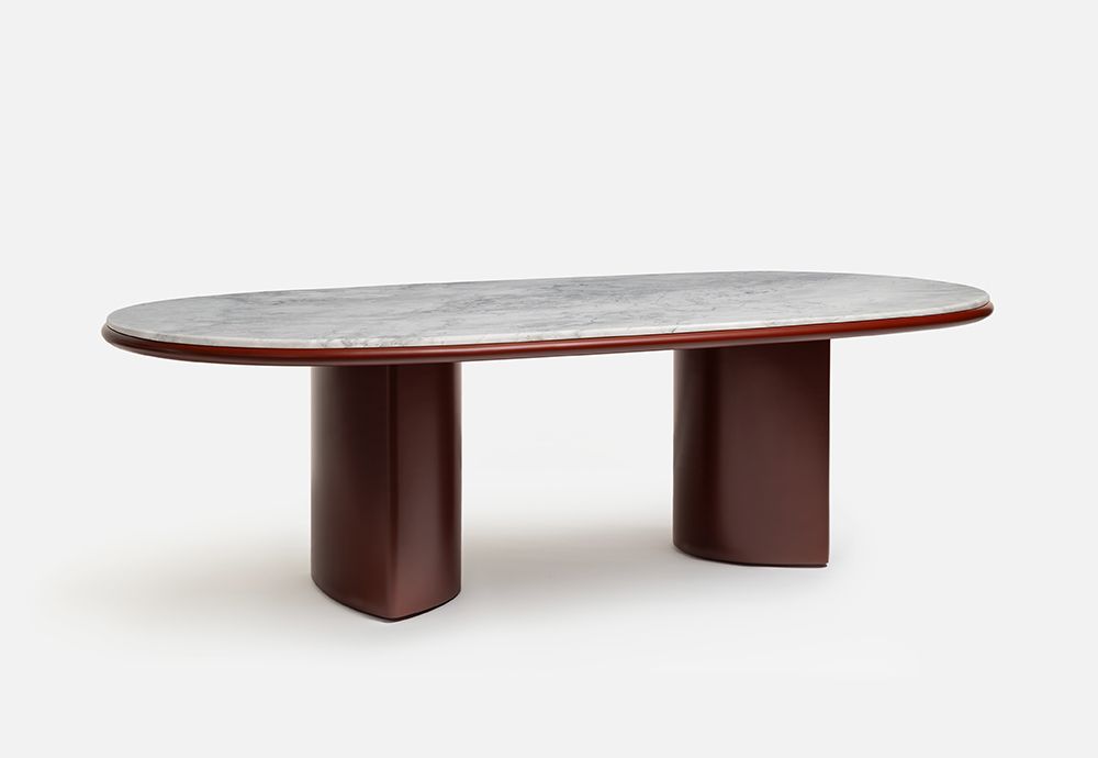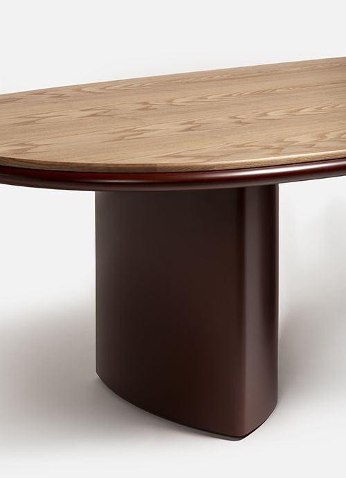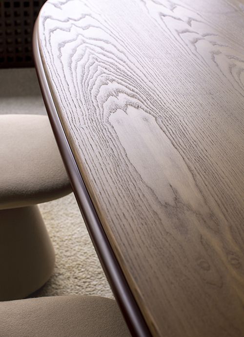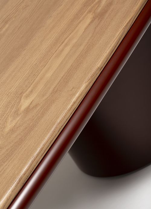 Обеденный стол изготовлен из ДВП и ДВП, шпонированных ясенем / Доступен со столешницей из ясеня или лака, а также из мрамора или порфира / ножки также из ясеня или лака