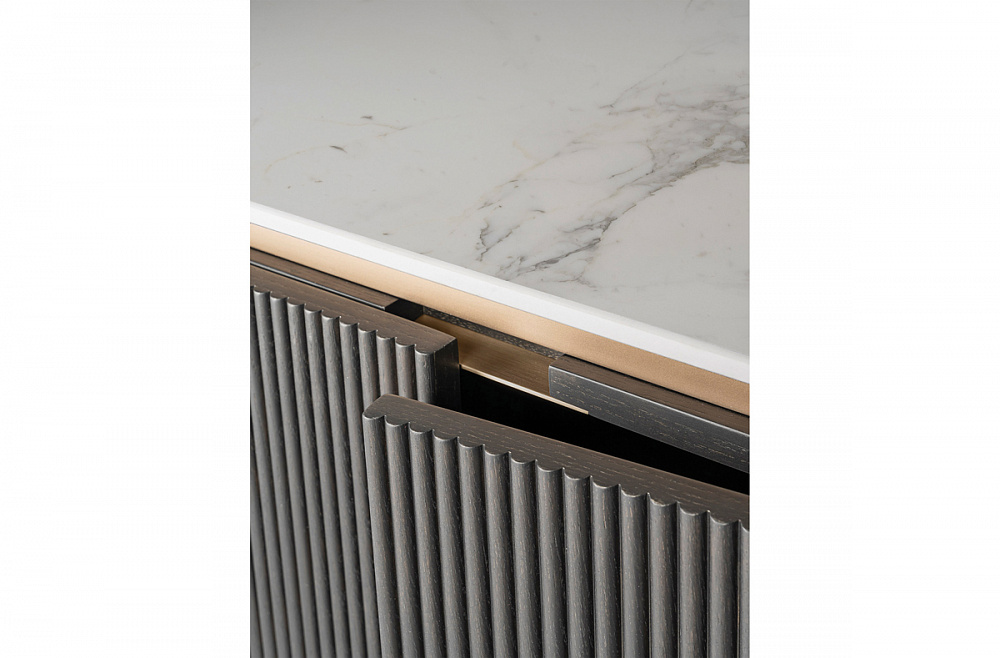 дерево / столешница из светло-бронзы / детали из светло-бронзового металла / керамическая столешница