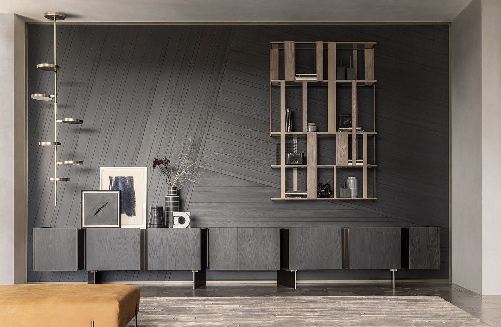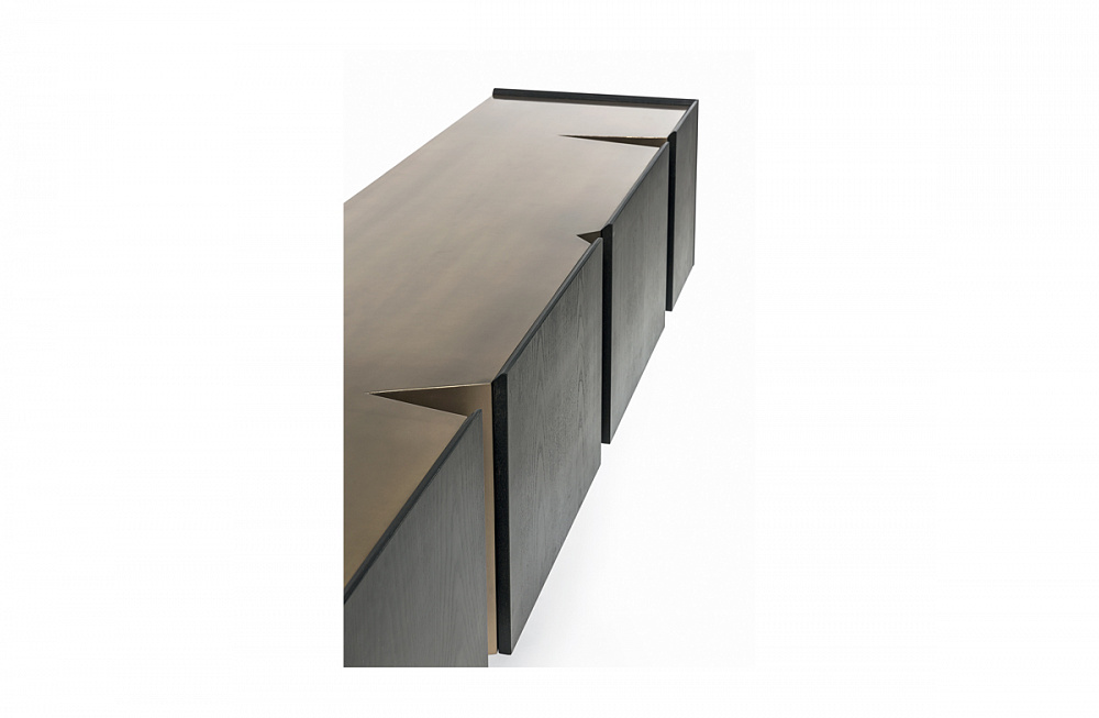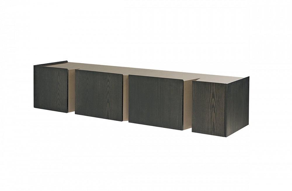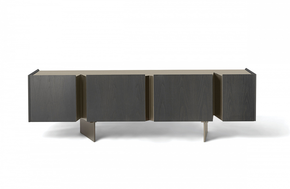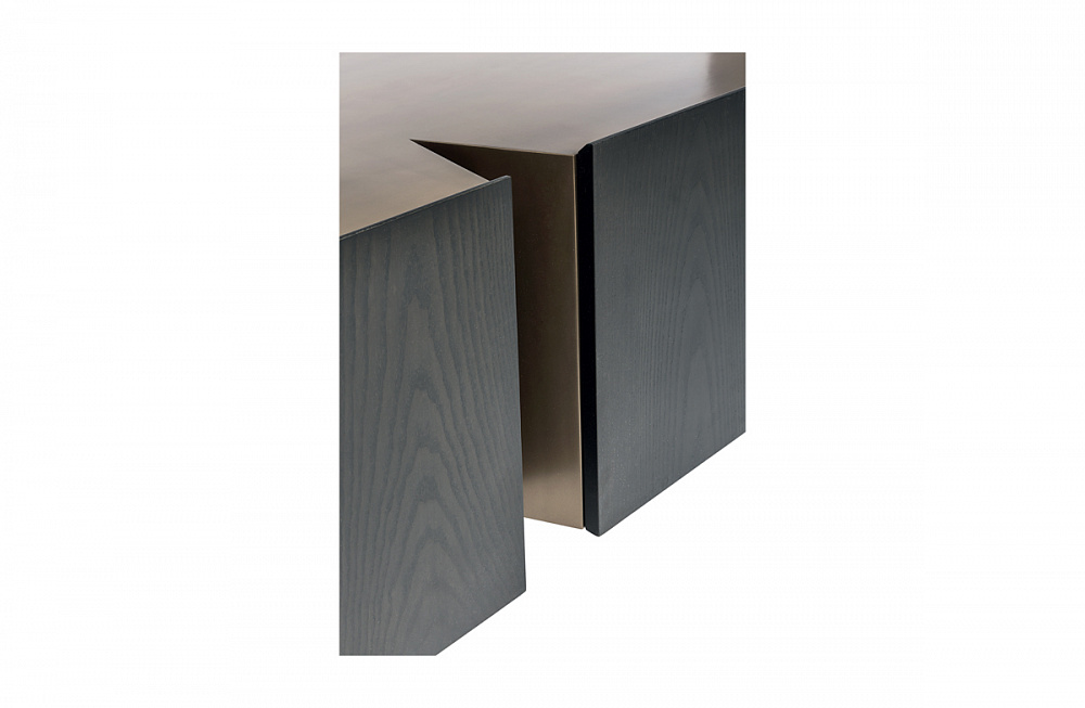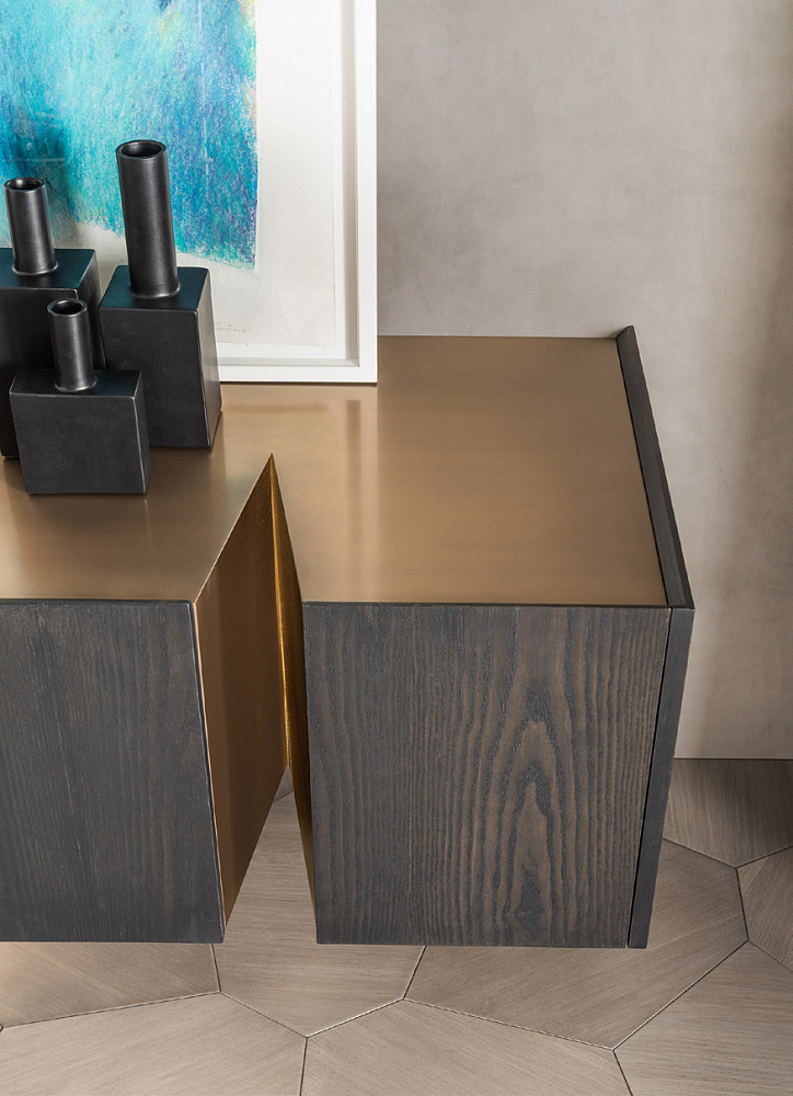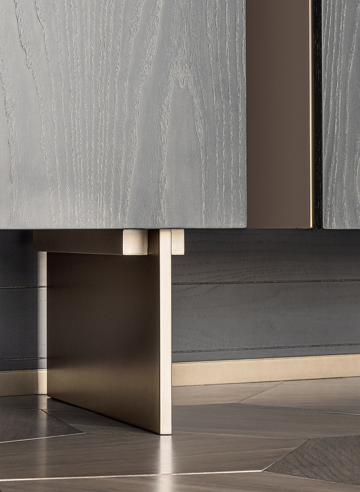 каркас из светлой бронзы / деревянные дверцы и боковины / внутренняя отделка из светлой бронзы / деревянные полки