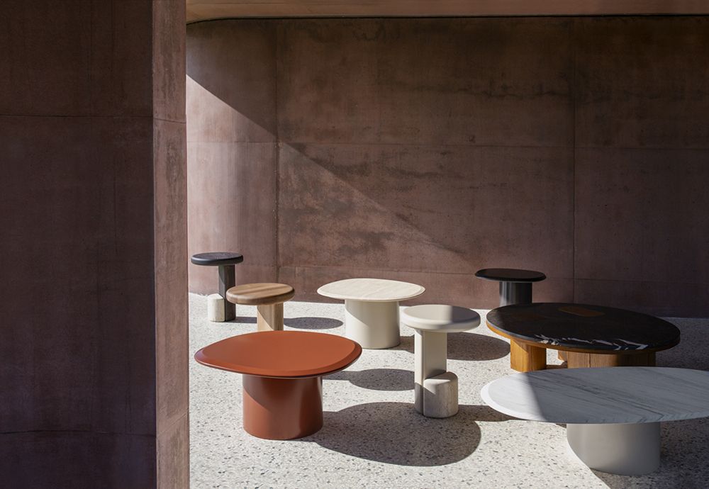 Журнальный столик из массива ясеня и древесноволокнистых панелей / Ножка и столешница из ясеня или лакированные, доступны с матовым лакированным или мраморным основанием.